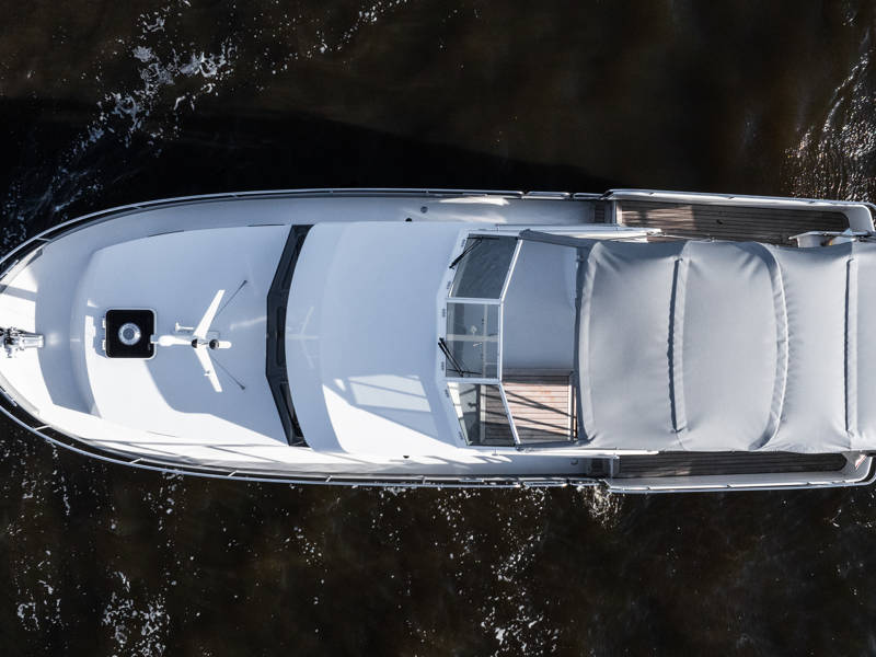 Bei sonnigem Sommerwetter lässt sich dieses Verdeck übrigens vollständig entfernen. Die Linssen 35 SL AC wurde mit einem vollständigen Navigationspaket ausgestattet.