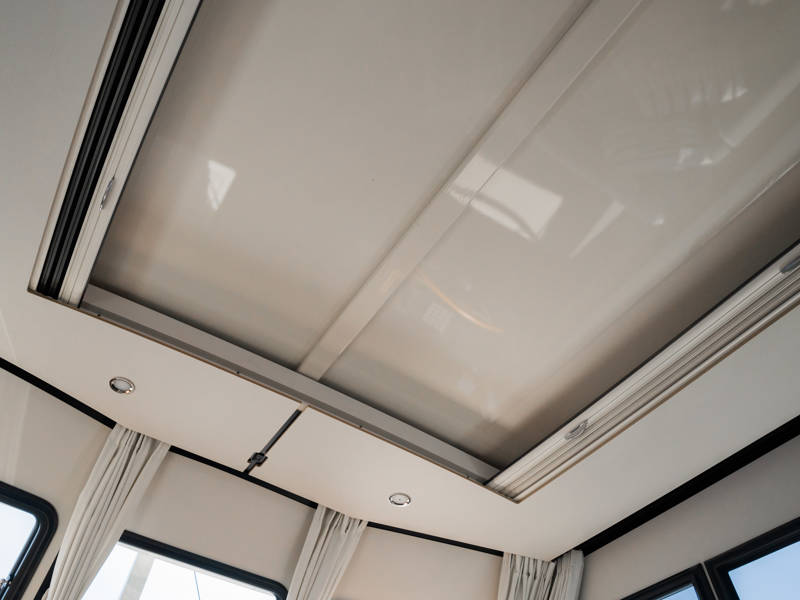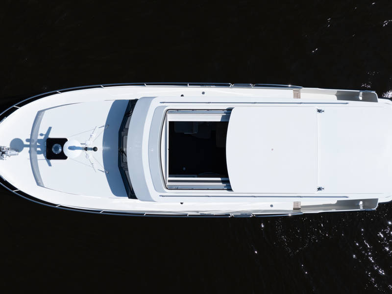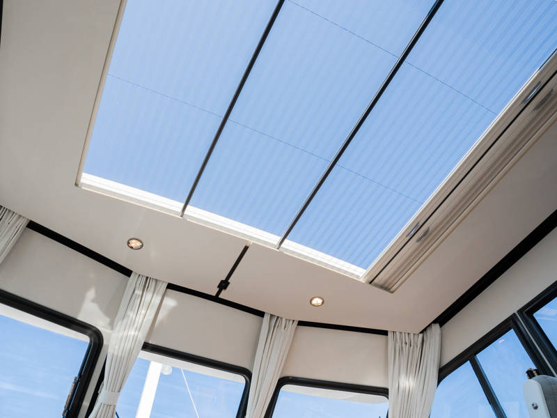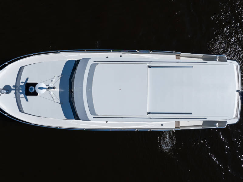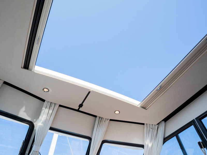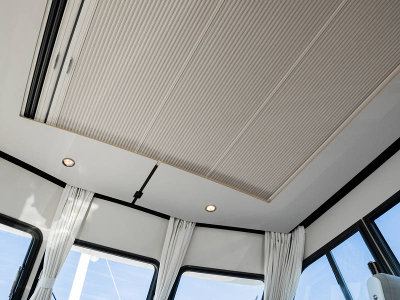 Oberhalb der Küche und der Lenkposition befindet sich eine schiffweite Schiebeluke, die das "Außenlenkgefühl" unterstreicht.