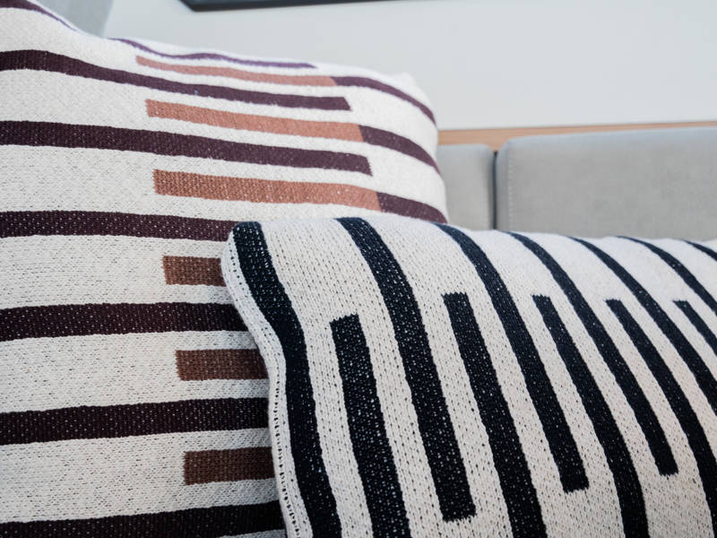 Dann gibt es den Salon auf der Rückseite mit einem großen Sofa und einem beweglichen Esstisch. Auf der anderen Seite gibt es viel Stauraum und den Fernseher.