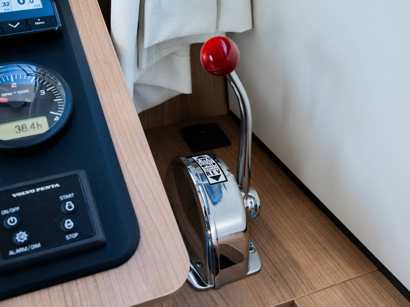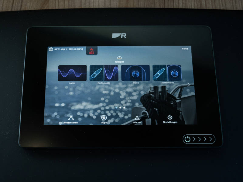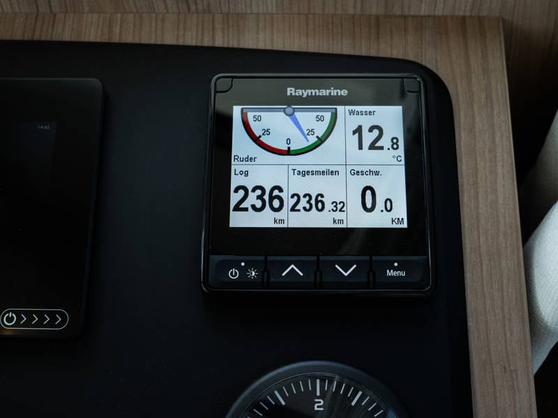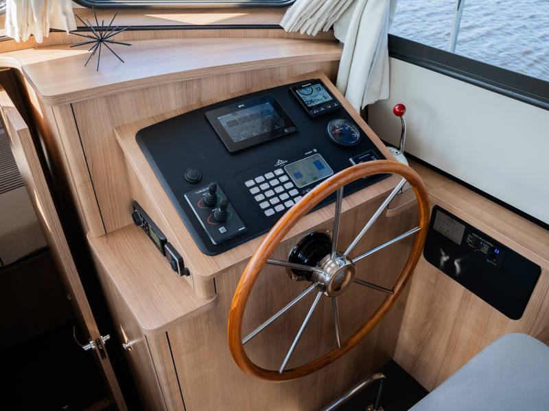 Auf der Steuerbordseite befinden sich die Lenkposition und das Armaturenbrett, das mit einem kompletten Navigationspaket ausgestattet ist.