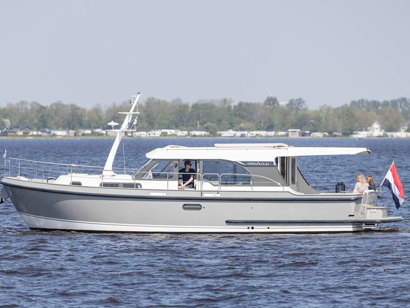 Der Steuerstand ist mit einem kompletten Navigationpaket, einer Zwei-Personen-Lenkbank mit daneben ein Schiebetür und einem Volldach-Schiebedach ausgestattet, das das Gefühl vermittelt, draußen zu sitzen. Diese 40.0 Sedan von Linssen Yachts hat auch besonders gute Segeleigenschaften.