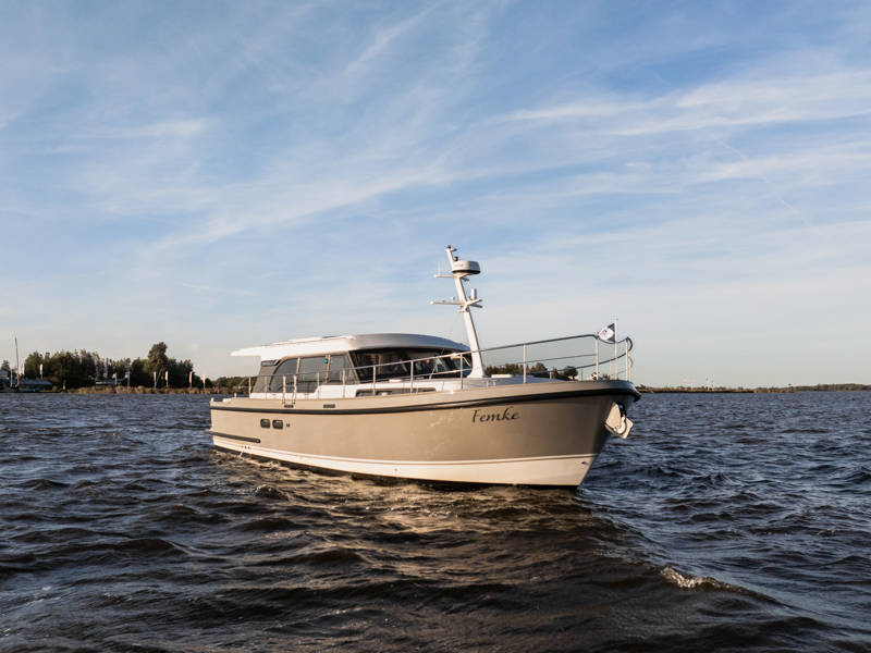 Die Femke ist unter anderem mit einem leistungsstarken Generator, Bug- und Heckstrahlruder, einem voll ausgestatteten Steuerstand mit Raymarine-Geräten wie Plotter, Tridata, Autopilot und UKW-Funk ausgestattet.