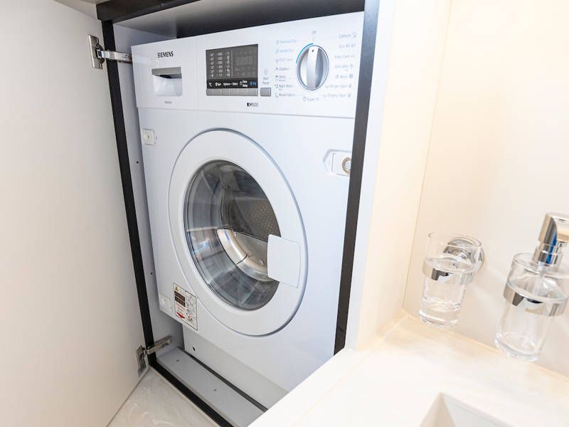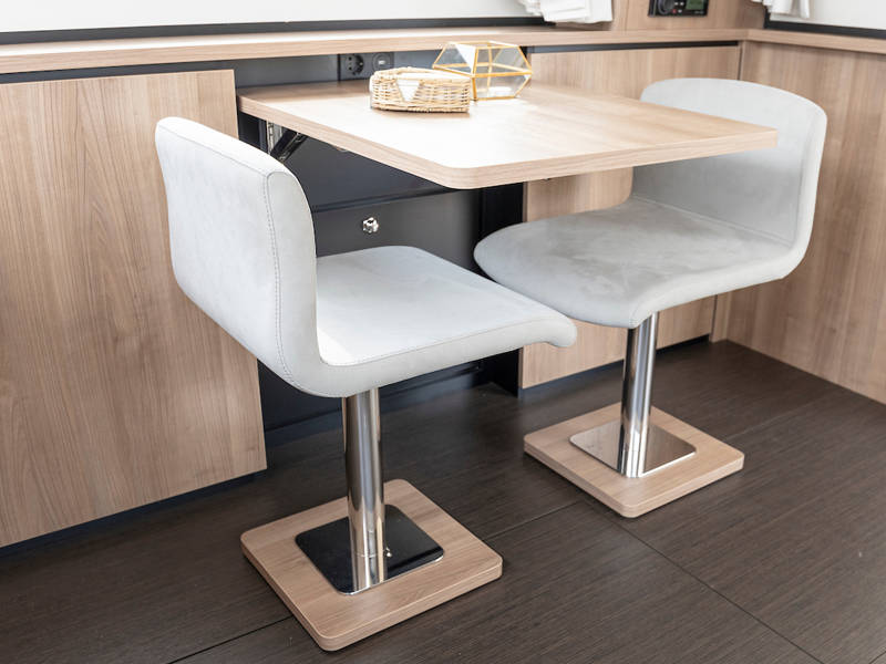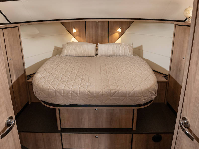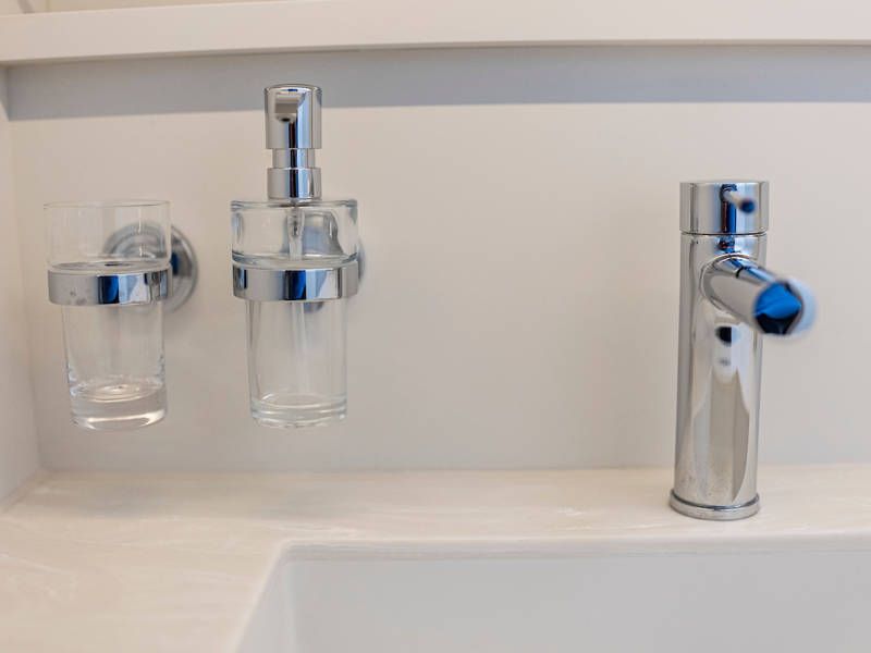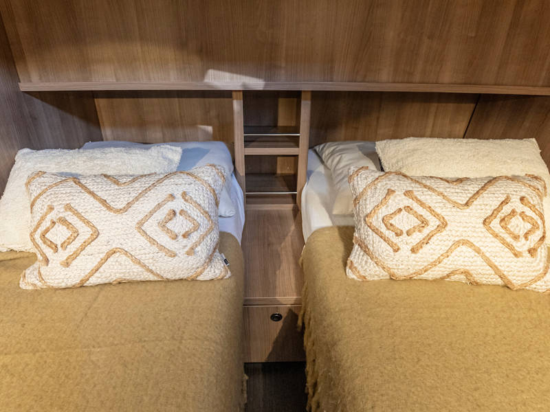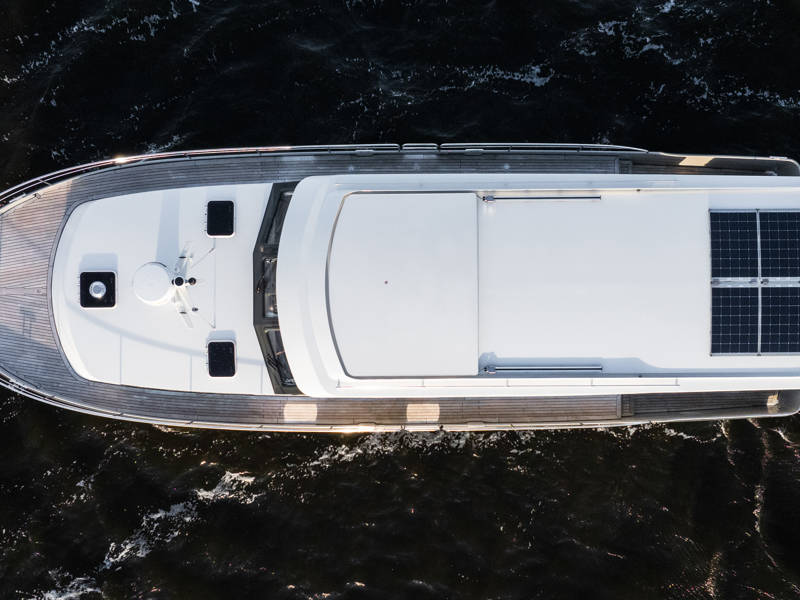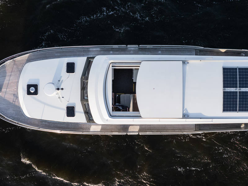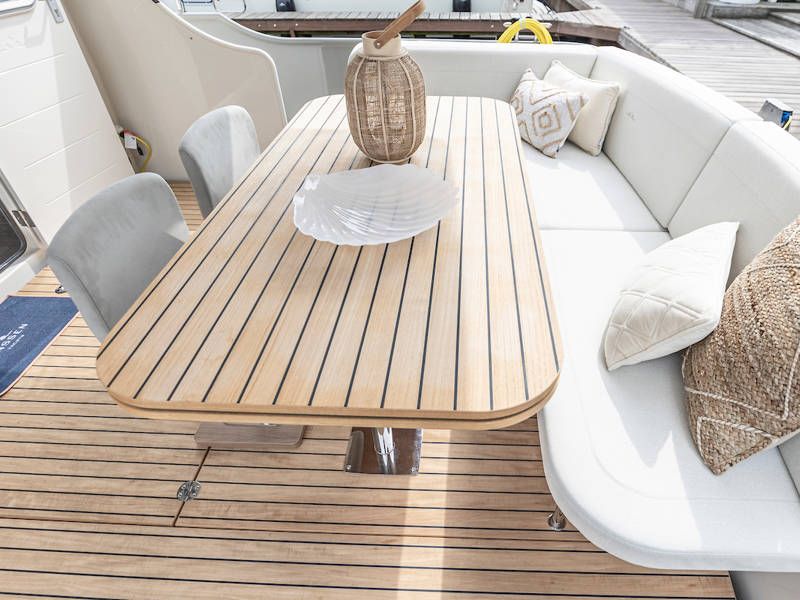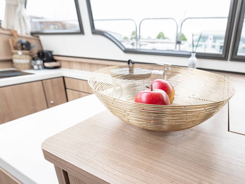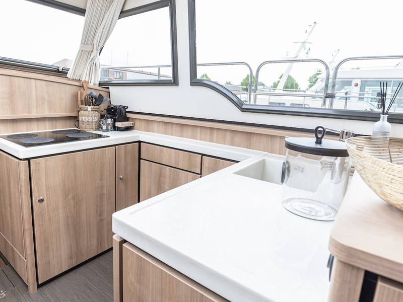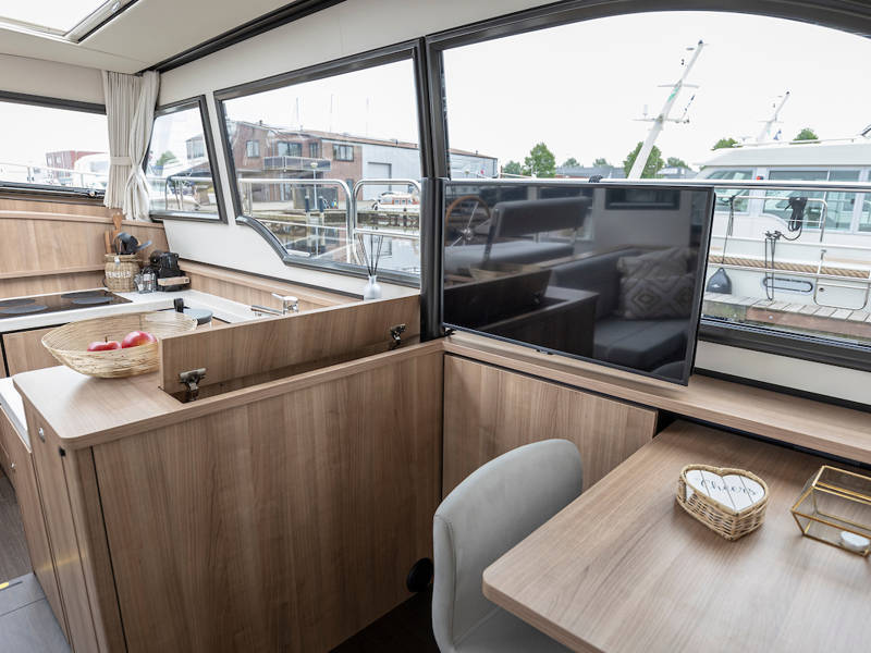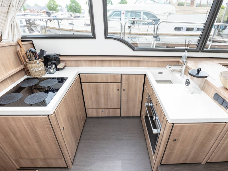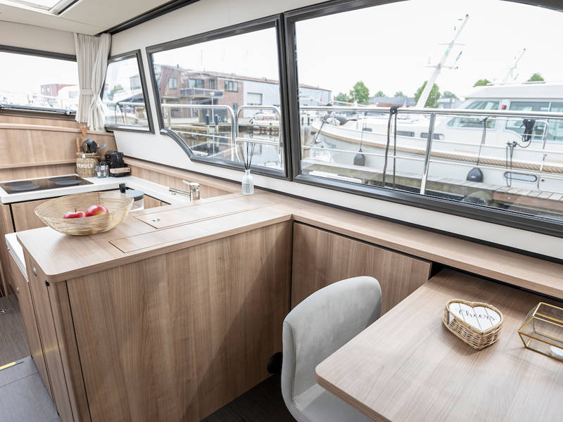 Die Yacht ist mit zwei Schlafkabinen, zwei Badezimmer, 1 grosse Duschen und zwei Toiletten ausgestattet, natürlich elektrisch. Der Salon ist mit einem Easy-Sleep-System ausgestattet, mit dem Sie im Handumdrehen ein Doppelbett machen können.
