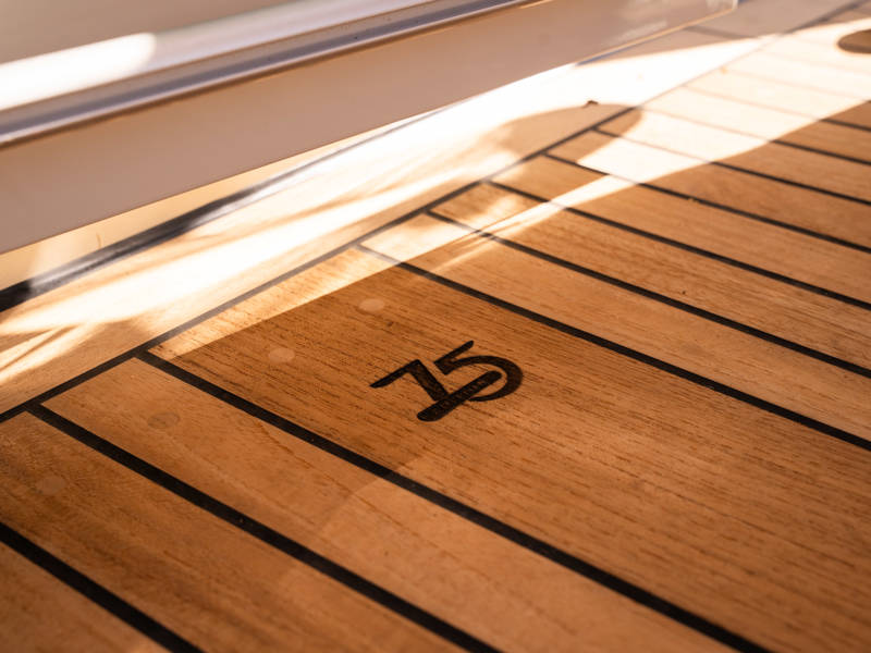 Das Achterdeck ist mit echtem Teakholz verkleidet, was der Yacht einen luxuriösen, nautischen Charakter verleiht.