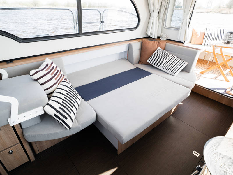 Dieses Boot ist mit einem EasySleep-System in der Sitzbank ausgestattet, mit dem Sie im Handumdrehen ein bequemes Bett daraus machen können (Beispiel von einer anderen Yacht)