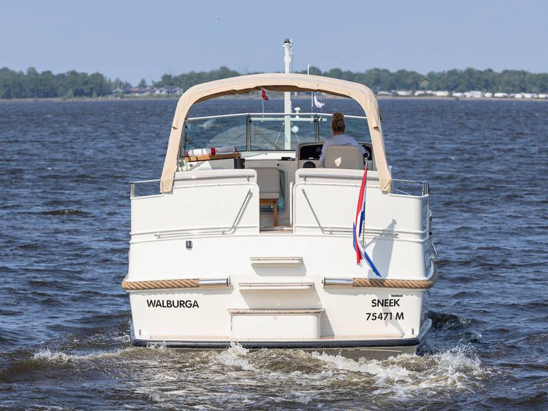 An Deck gibt es reichlich Sitzgelegenheiten auf der festen Bank mit feinen Kissen, und das Achterdeck kann rund um die Bank mit einem extragroßen Cabrio-Zelt komplett abgeschlossen werden. Das Achterdeck kann beheizt werden, so dass Sie bis in den späten Abend hinein bequem draußen sitzen können.