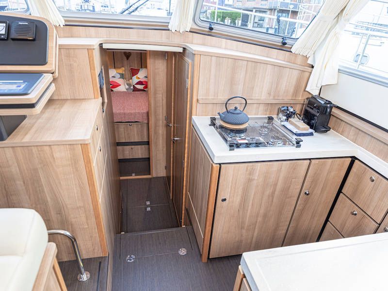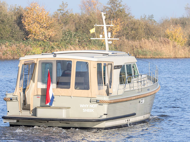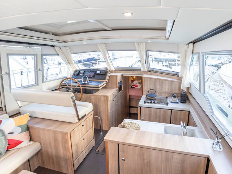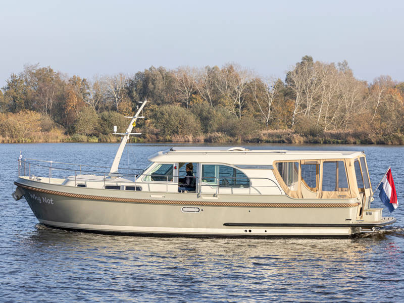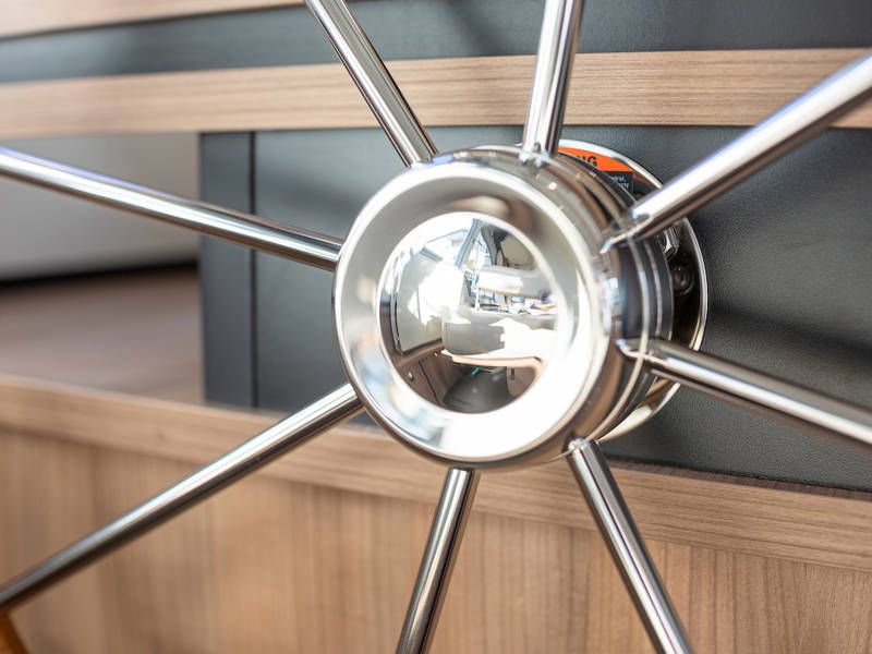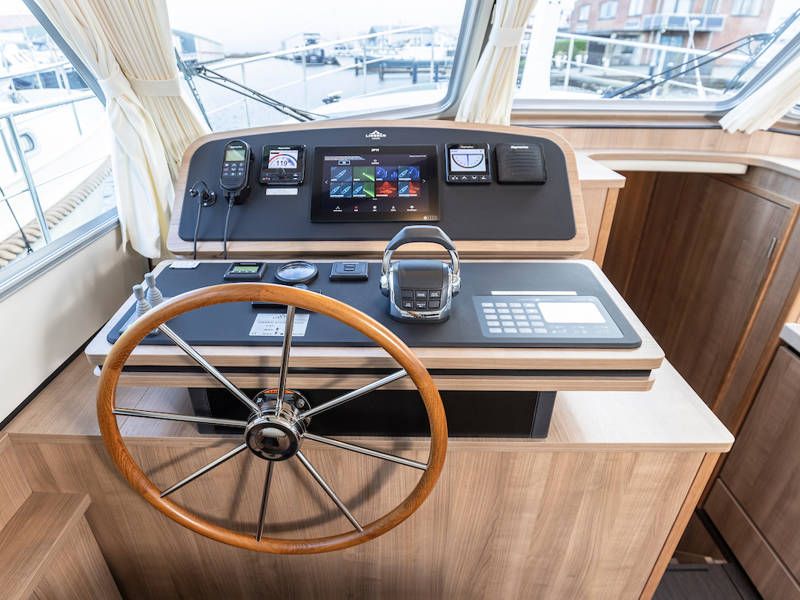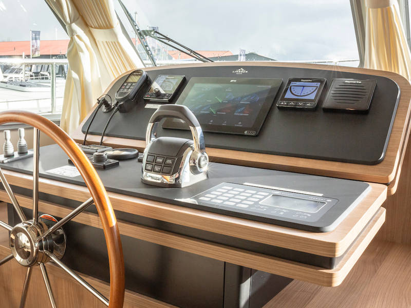 Der Steuerstand ist mit einem kompletten Navigationpaket, einer Zwei-Personen-Lenkbank mit daneben ein Schiebetür und einem Volldach-Schiebedach ausgestattet, das das Gefühl vermittelt, draußen zu sitzen. Diese 40.0 Sedan von Linssen Yachts hat auch besonders gute Segeleigenschaften.