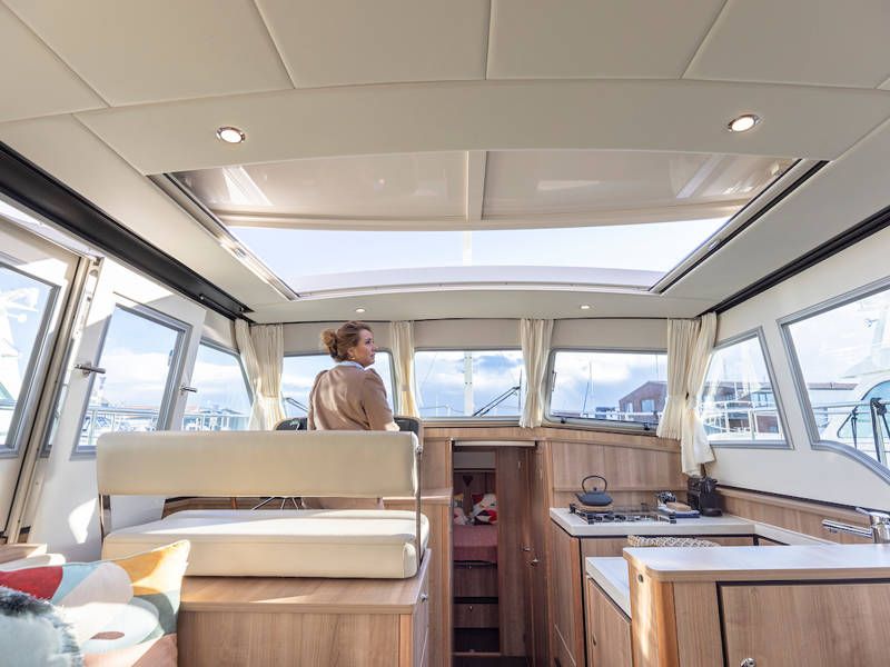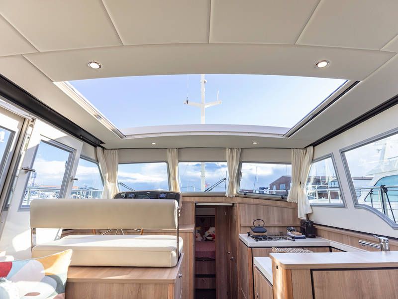 Dieses super charmante Open-Cockpit-Modell ist eine sehr willkommene Ergänzung unserer Flotte. Die 40 Intero sedan ist ein echtes "Raumschiff". Der Salon fließt in das geräumige, offene Cockpit und vermittelt viel Licht und ein Gefühl von Luxus.