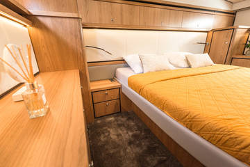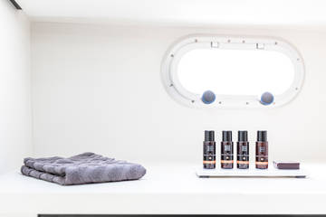 An Bord mangelt es nicht an Komfort. Im Salon befindet sich ein großer Smart-TV und dank 4G-Internet an Bord können Sie beispielsweise Netflix nutzen. In einem der Badezimmer steht eine Wasch-Trockenkombination zur Verfügung und mit dem leistungsstarken Generator sind Sie jederzeit unabhängig von externen Stromanschlüssen.