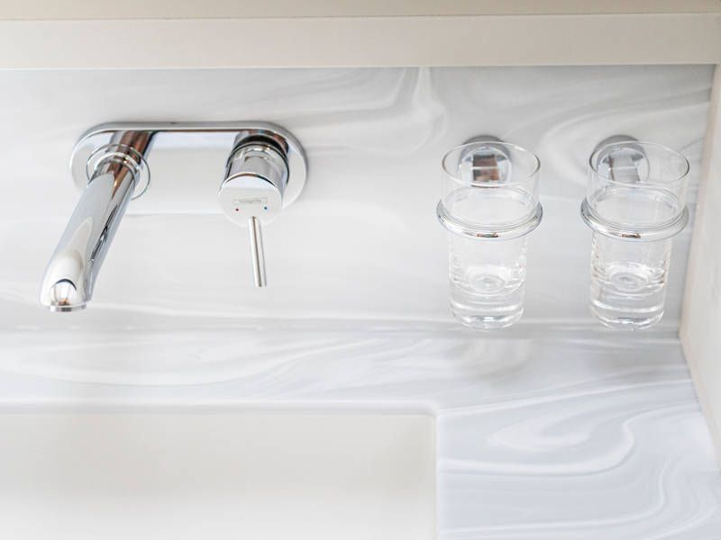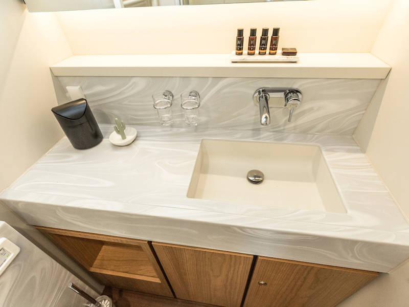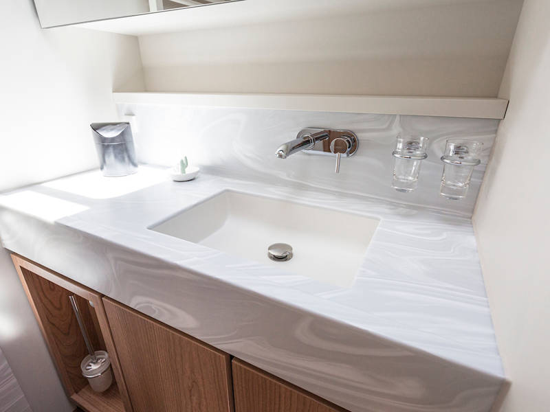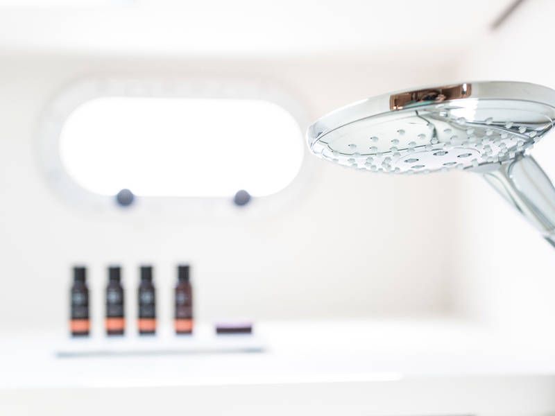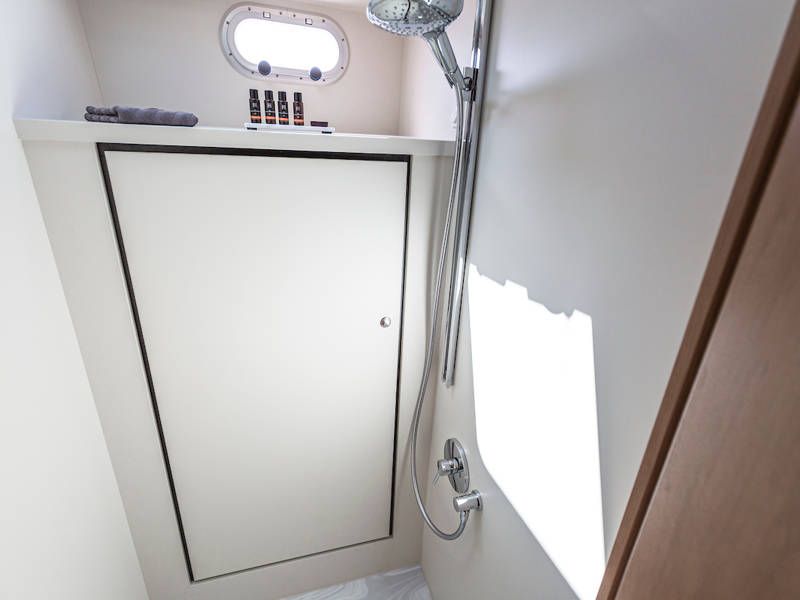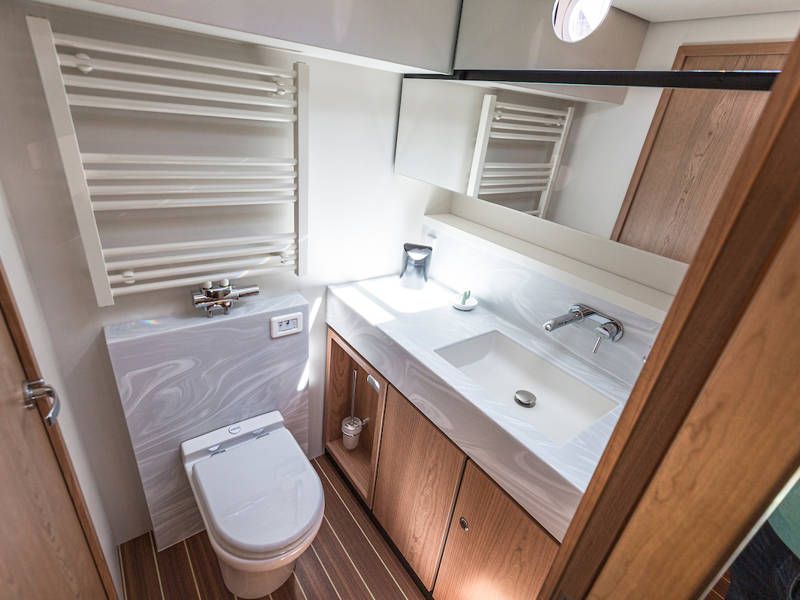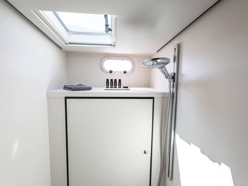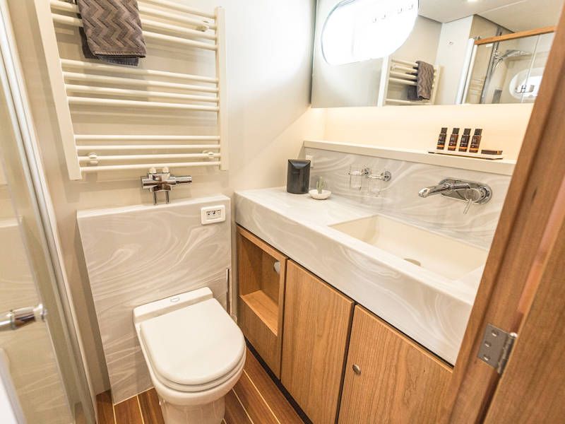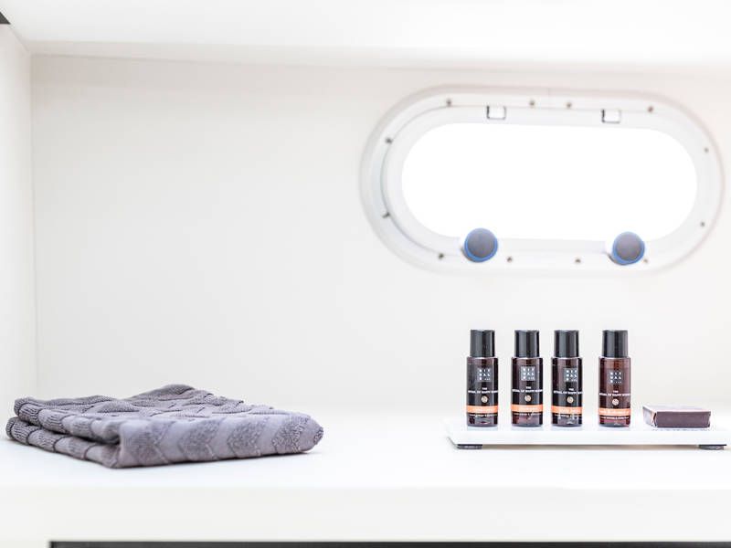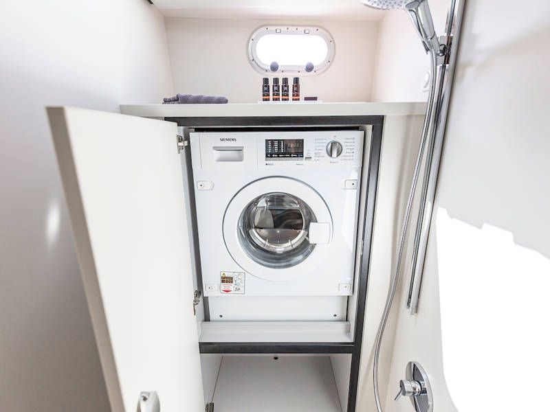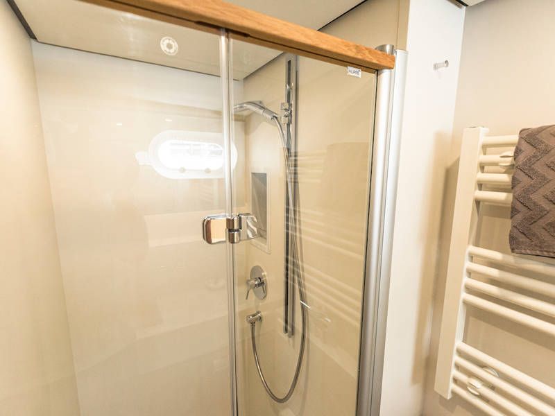 Jede Kabine hat ein eigenes Bad mit Dusche und eine eigene Toilette. Das raffinierte Finish und das attraktive Interieur sorgen für ein äußerst angenehmes Erlebnis. Ein Badezimmer ist ausgestattet mit ein Wasch- und trocken Maschine.
