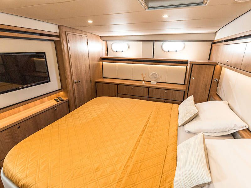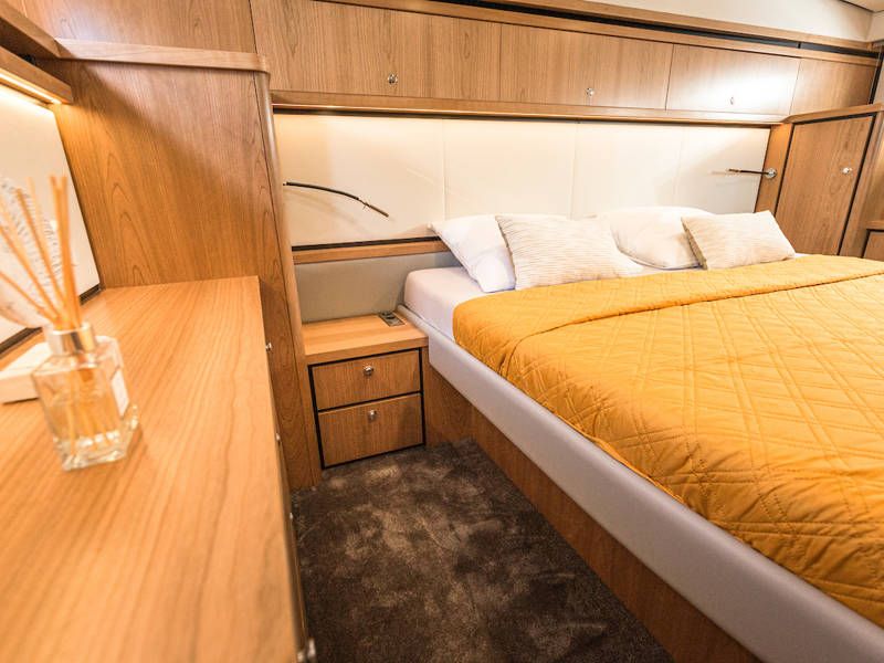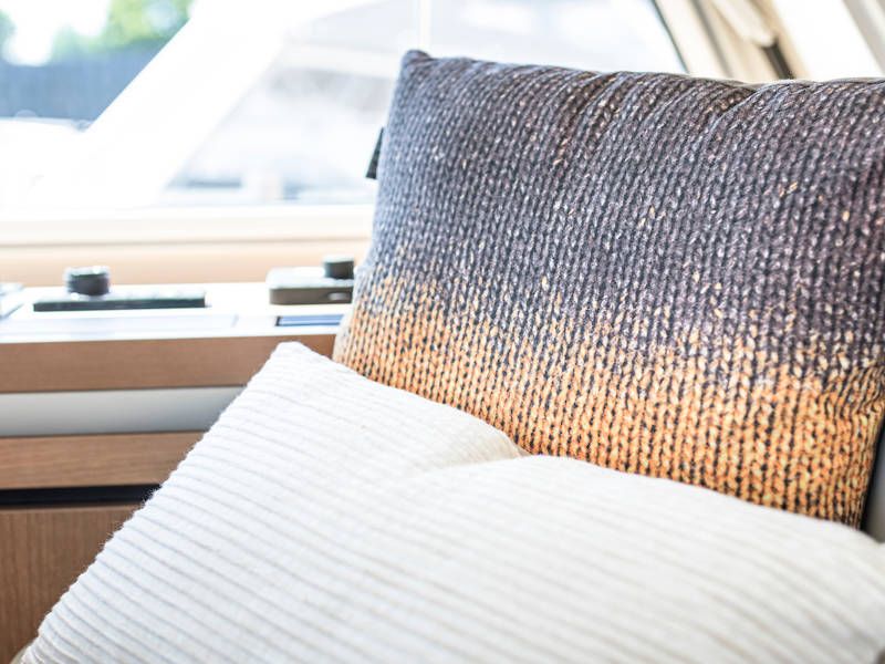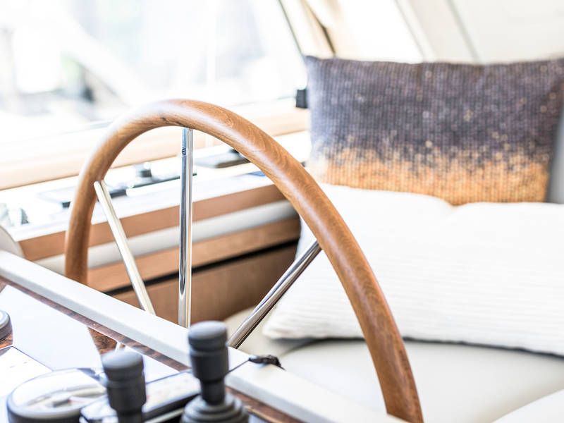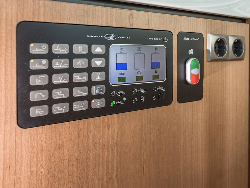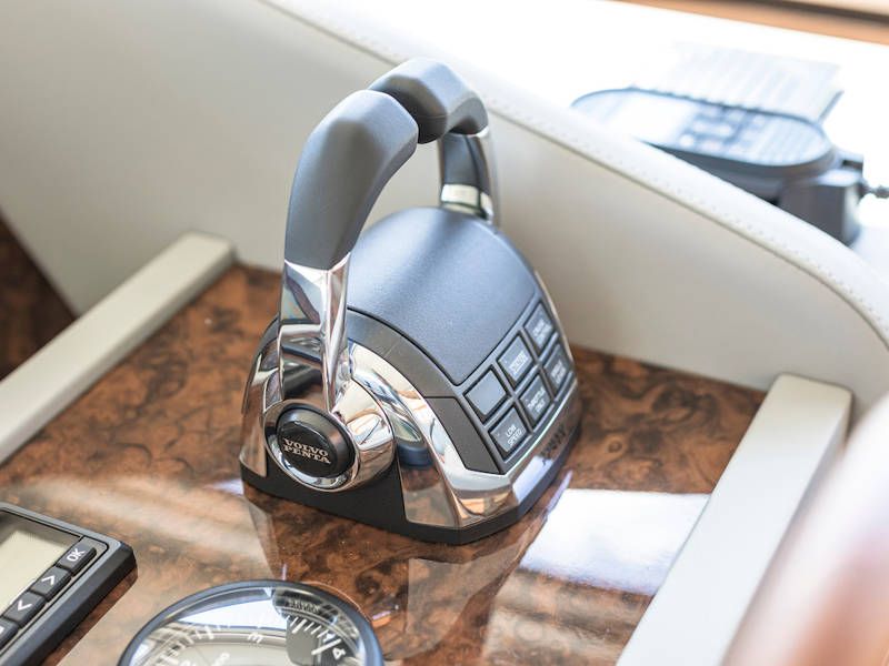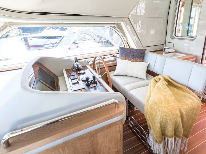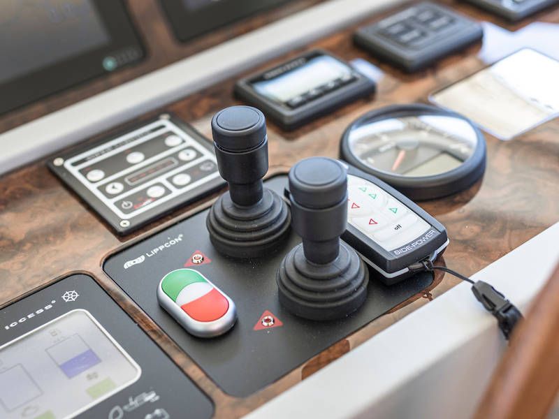 Der Steuerstand ist komplett mit der neuesten Raymarine-Ausrüstung ausgestattet. Dazu gehören ein Plotter, zwei Tridaten, UKW-Radio und Autopilot. Bug- und Heckstrahlruder sind sehr kräftig, proportionell und hydraulisch ausgestattet und mit Fernbedienung!