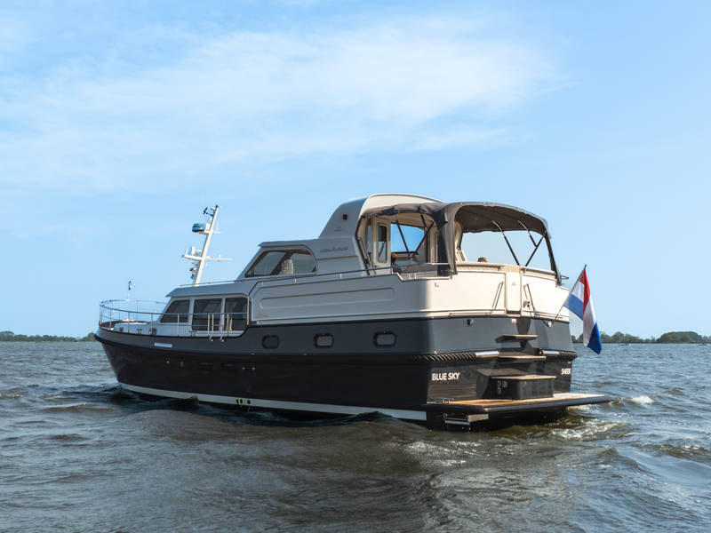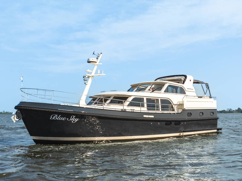 Die Linssen Grand Sturdy 480 VT Blue Sky, eine super ausgestattete Yacht mit sehr schickem Aussehen. Dieses brandneue Prunkstück der Flotte verfügt über jeden erdenklichen Luxus und Komfort.