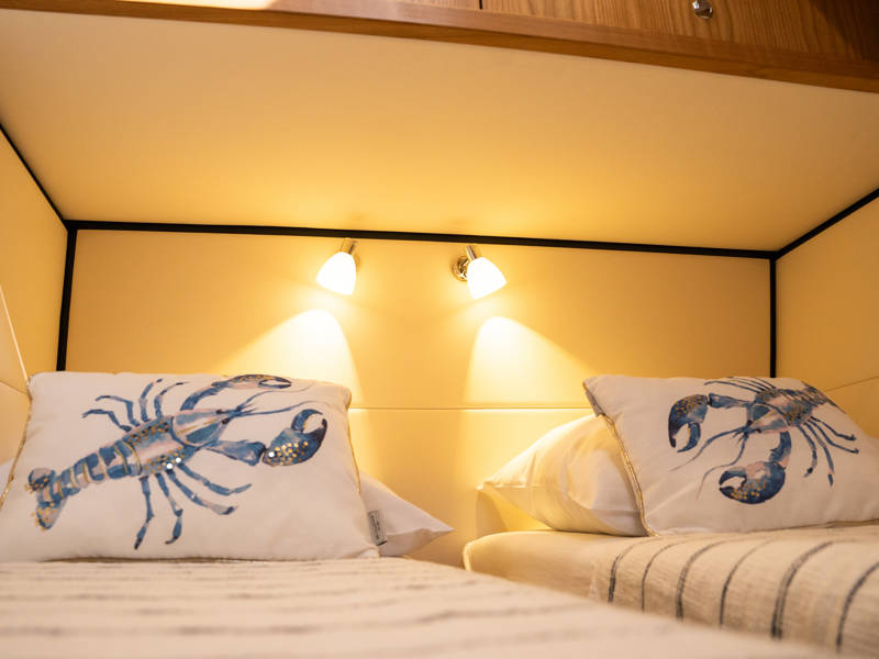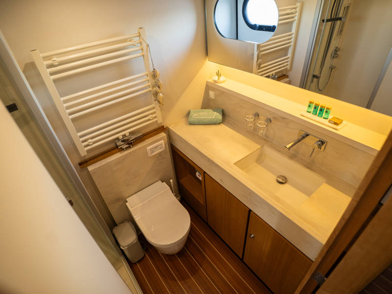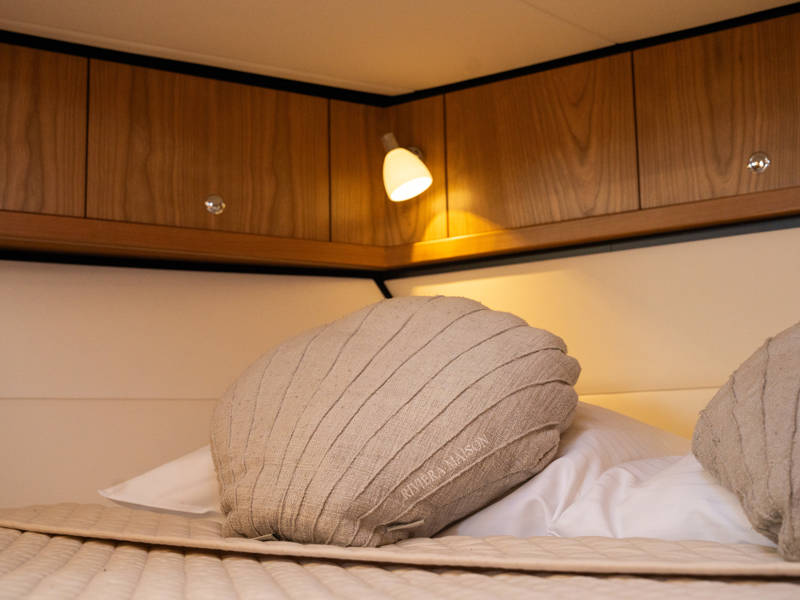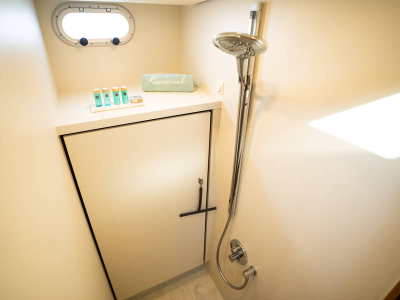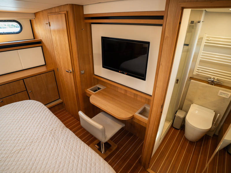 Auf dieser luxuriösen Motoryacht sind die Betten für alle Passagiere gemacht, es gibt Handtücher an Bord und es gibt WIFI.