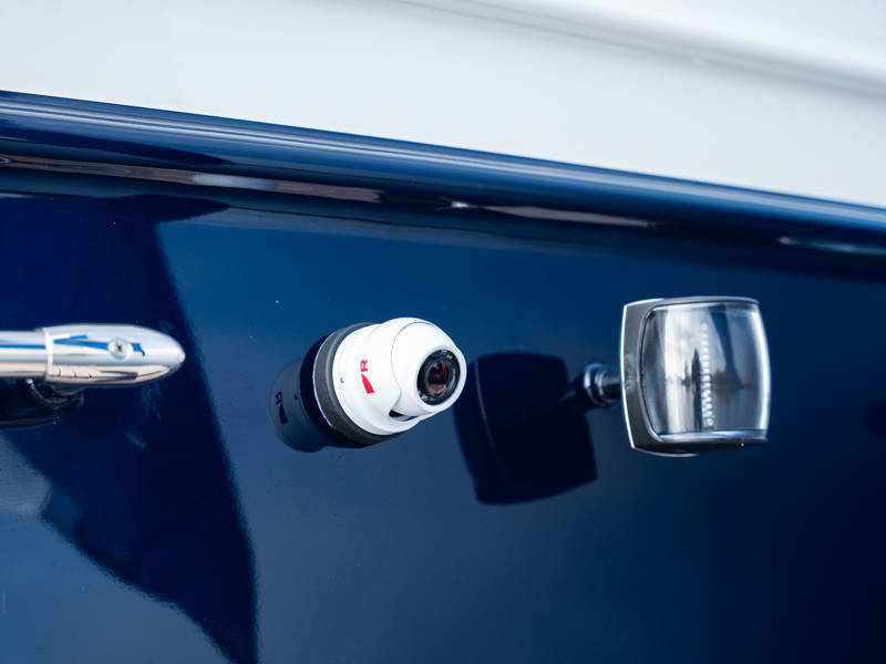 Die elektrisch absenkbare Badeplattform lässt sich vollständig ins Wasser versenken und erleichtert so den Zugang zum Wasser oder zum Beiboot – komfortabler geht es kaum.