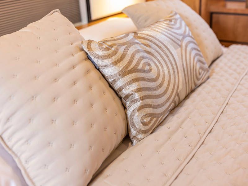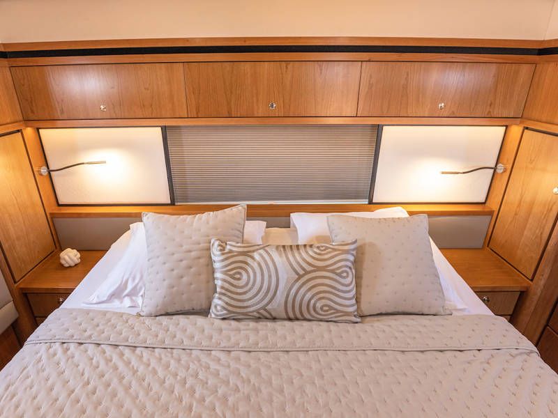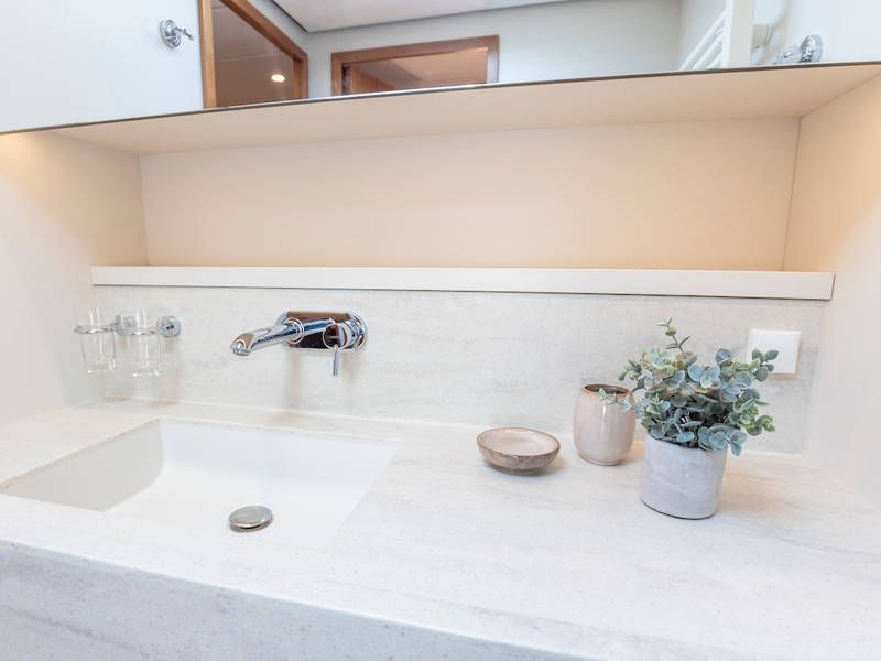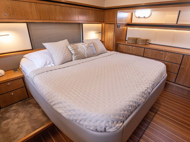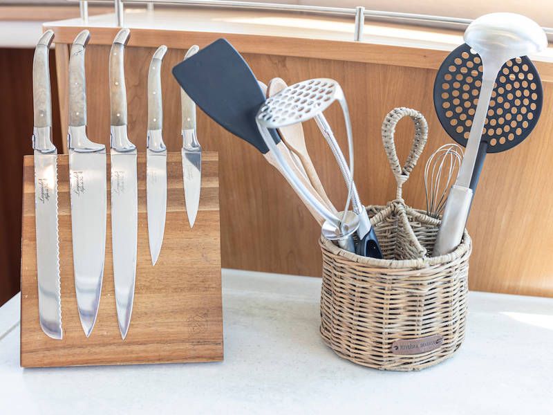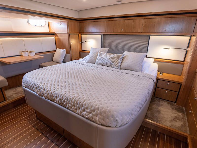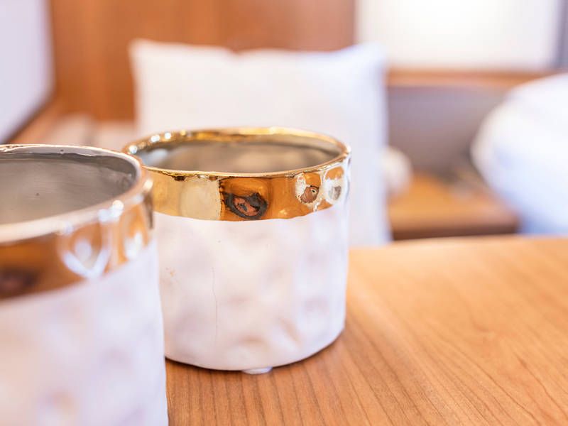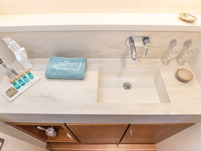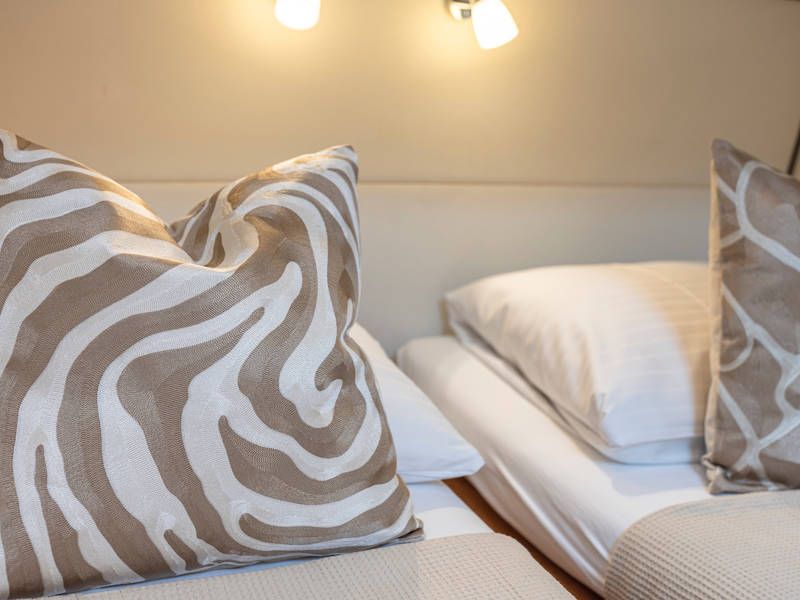 Unter Deck gibt es drei großzügige Doppelschlafkojen, zwei Badezimmer, zwei Toiletten. Eine voll ausgestattete Küche mit Kombibackofen, Geschirrspüler, Induktionskochfeld sowie eine integrierte, Luxus-Espressomaschine runden das luxuriöse Erlebnis ab.